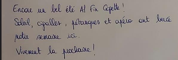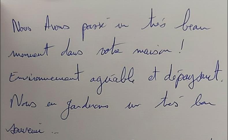 Notre séjour s’est bien passé. On en a beaucoup profité et trouvions que la semaine était trop courte. Nous espérons revenir une autre fois car ça nous a beaucoup plu. Cordialement Stef et Muriel.’