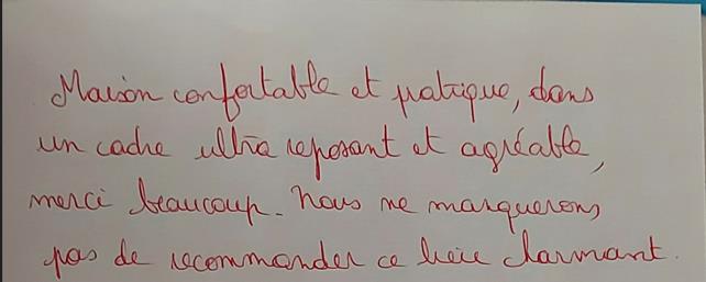 Nous avons déjà fait de la réclame pour votre maison chez des amis et allons sûrement encore le faire les mois suivants car nous étions très enthousiastes. C’est une chouette maison qui est super bien équipée. ‘
