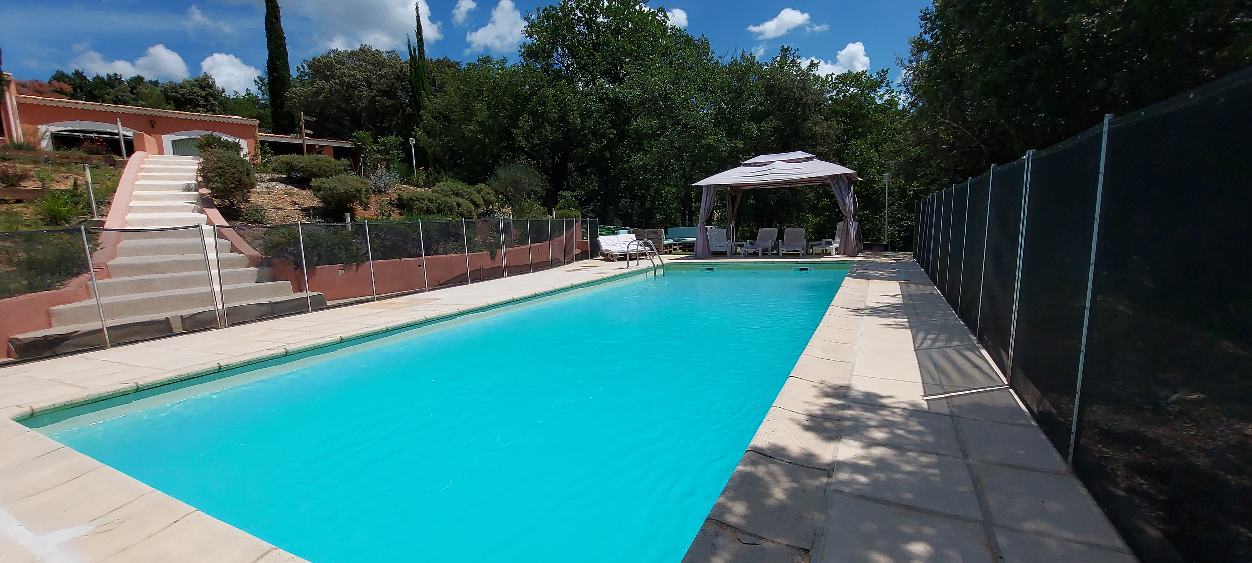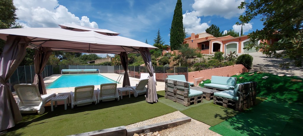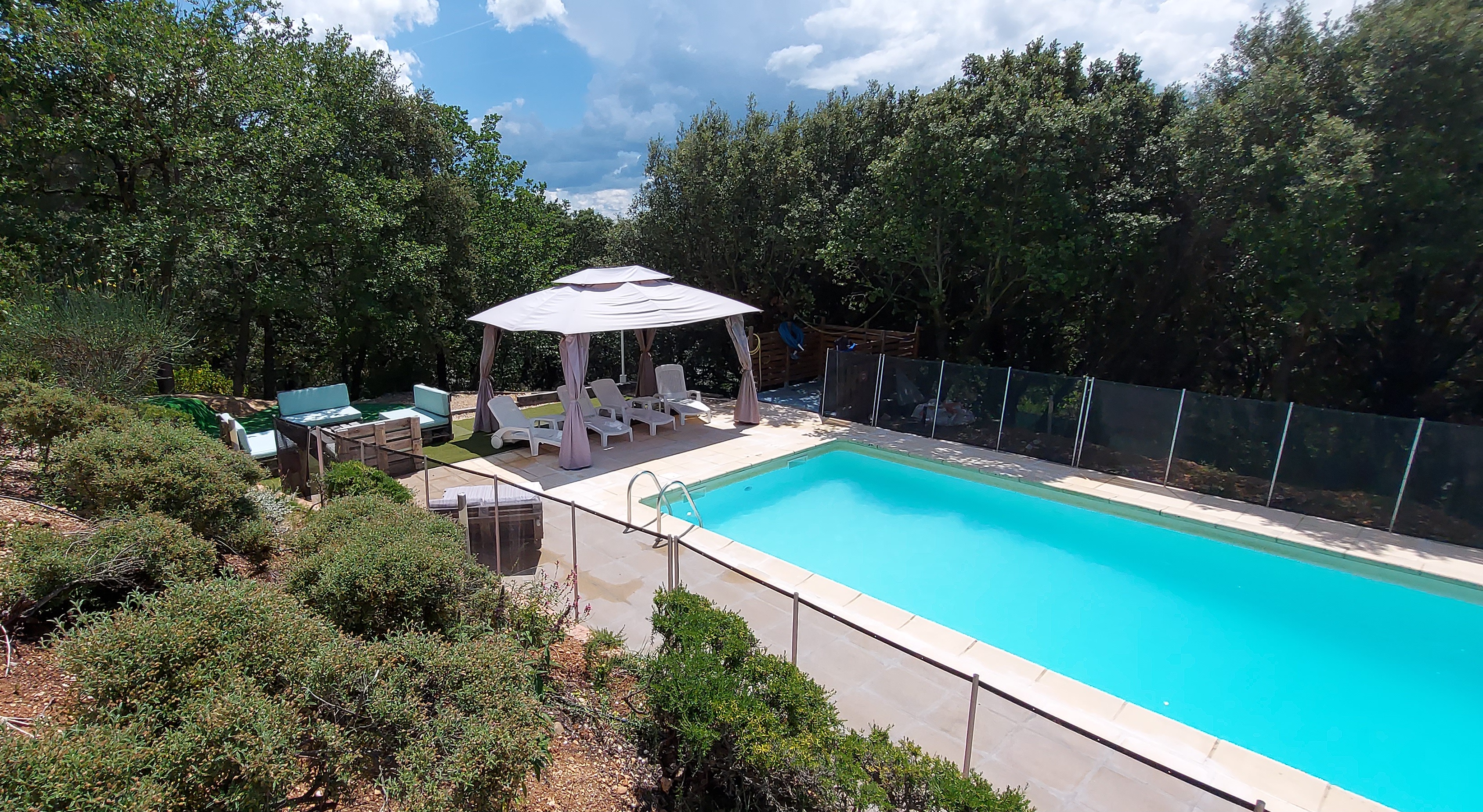 - Een zwembad (10 op 4) beveiligd & ligstoelen en tuinpaviljoen